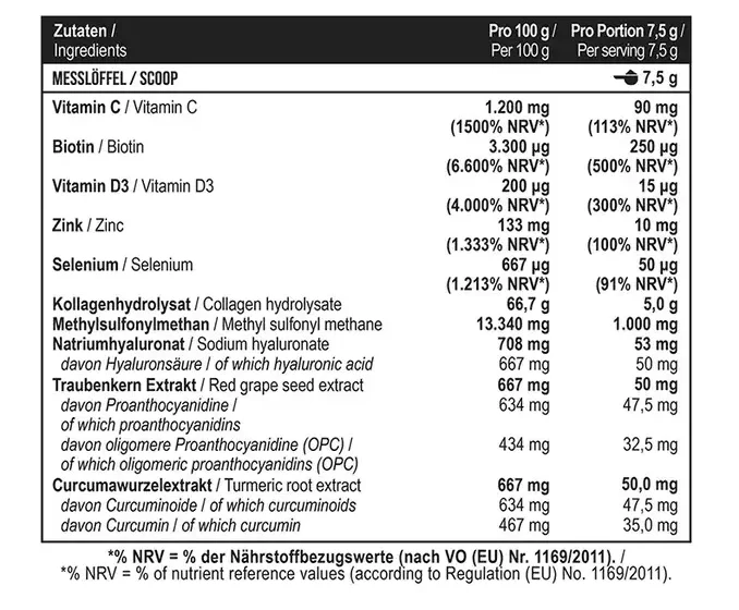 - ✅ Verisol® Fisch-Kollagen – hydrolysiert für gute Löslichkeit.