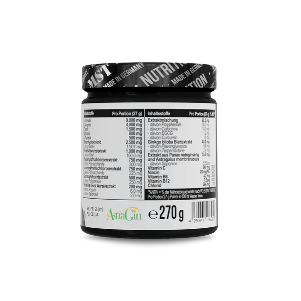 Die vollständig in Deutschland produzierte Formel kombiniert hochdosierte Aminosäuren, funktionelle Pflanzenextrakte sowie die bewährten Markenrohstoffe S7® und AstraGin®.
